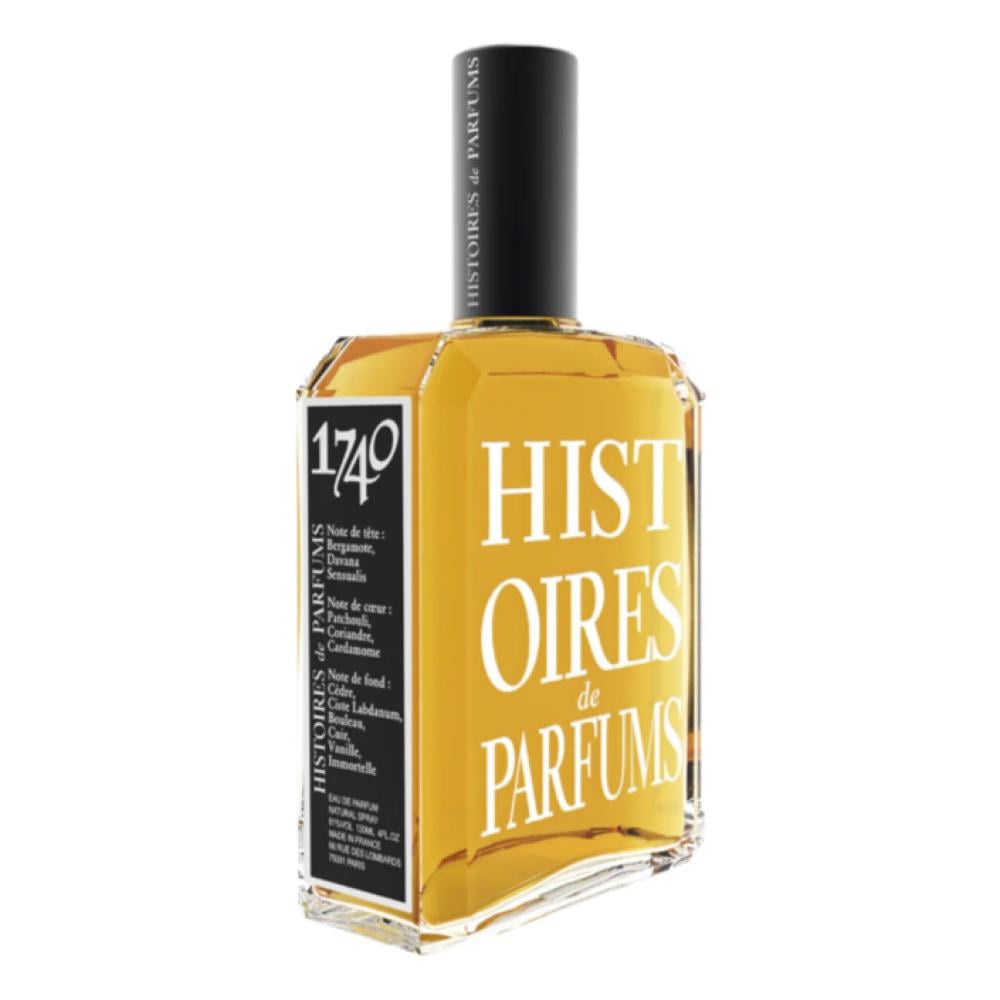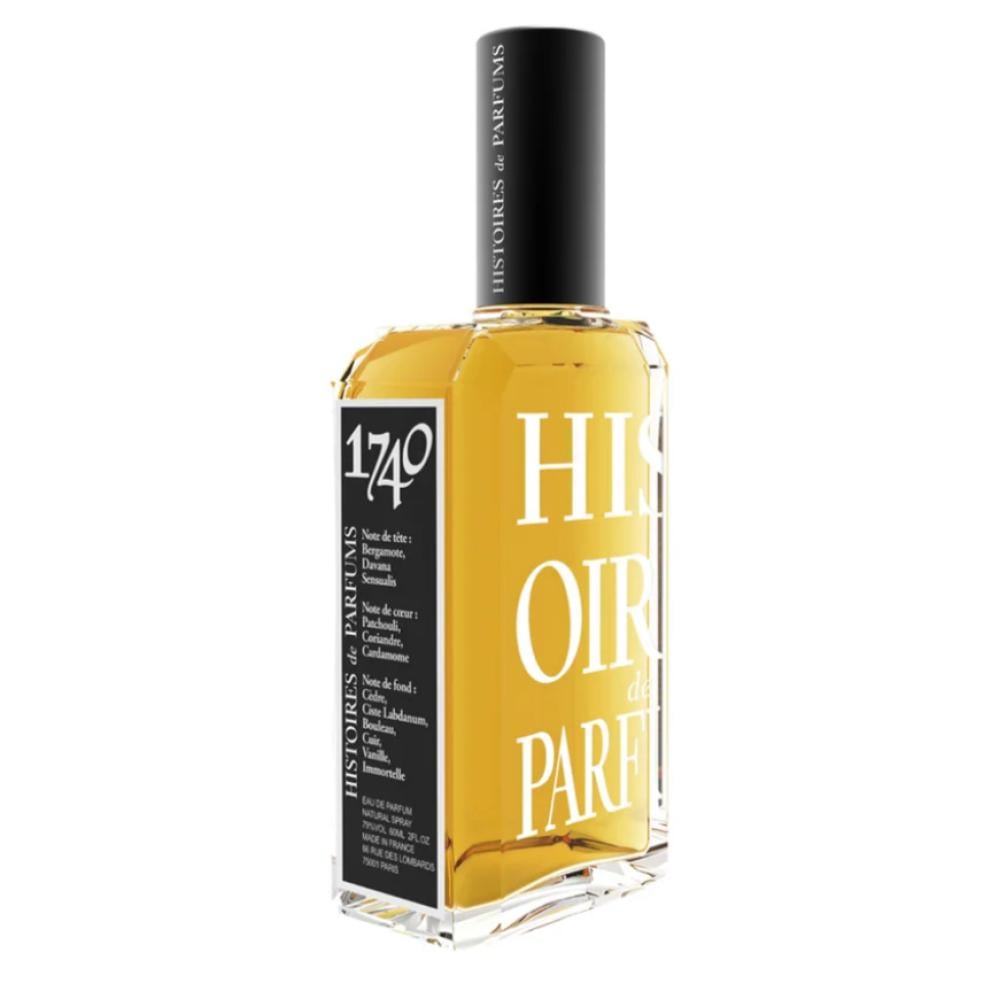 Histoires de Parfums 1740 Eau de Parfum هو عطر شرقي خشبي أصدر عام 2000. يبدأ بانطلاقة من البرغموت ودافانا، يتطور إلى قلب من الباتشولي والكزبرة والهيل، وينتهي بقاعدة دافئة من الجلد، اللبدانوم، وخشب الأرز مع لمسات فانيليا وإليمي وخزامى. تركيبة راقية وقوية تناسب اللحظات التي تتطلب حضورًا عاطفيًا ورفيعًا.