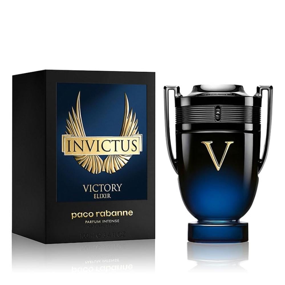 Paco Rabanne Invictus Victory Elixir Parfum Intense is a more powerful and concentrated version of the iconic Invictus collection. It harmonizes smoky and woody accords with deep vanilla touches, reflecting a bold and mysterious masculine aura.